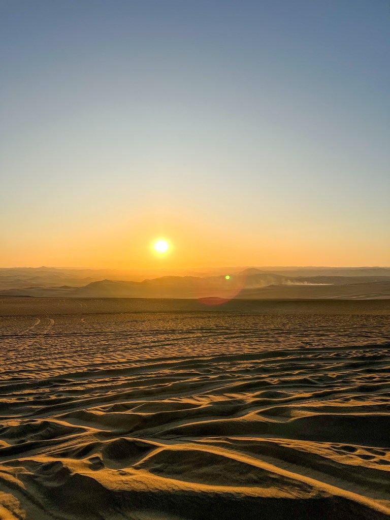 Have you ever been to the desert? I hadn’t until I went to Huacacina in Peru and it was one of the coolest landscapes I have ever laid eyes on. Tourists are carted around in sand dune buggies, an experience I can only compare to being on a rollercoaster with no tracks. I was shocked that we didn’t flip over but the expert drivers who have been doing this all their life loved to make the tourists panic. It was an exhilarating experience. We also got to slide down the giant sand dunes on boards which was so much fun. There is an oasis in the middle of the desert around which the town is built. This was one of the top thrillseeking experiences I’ve had.